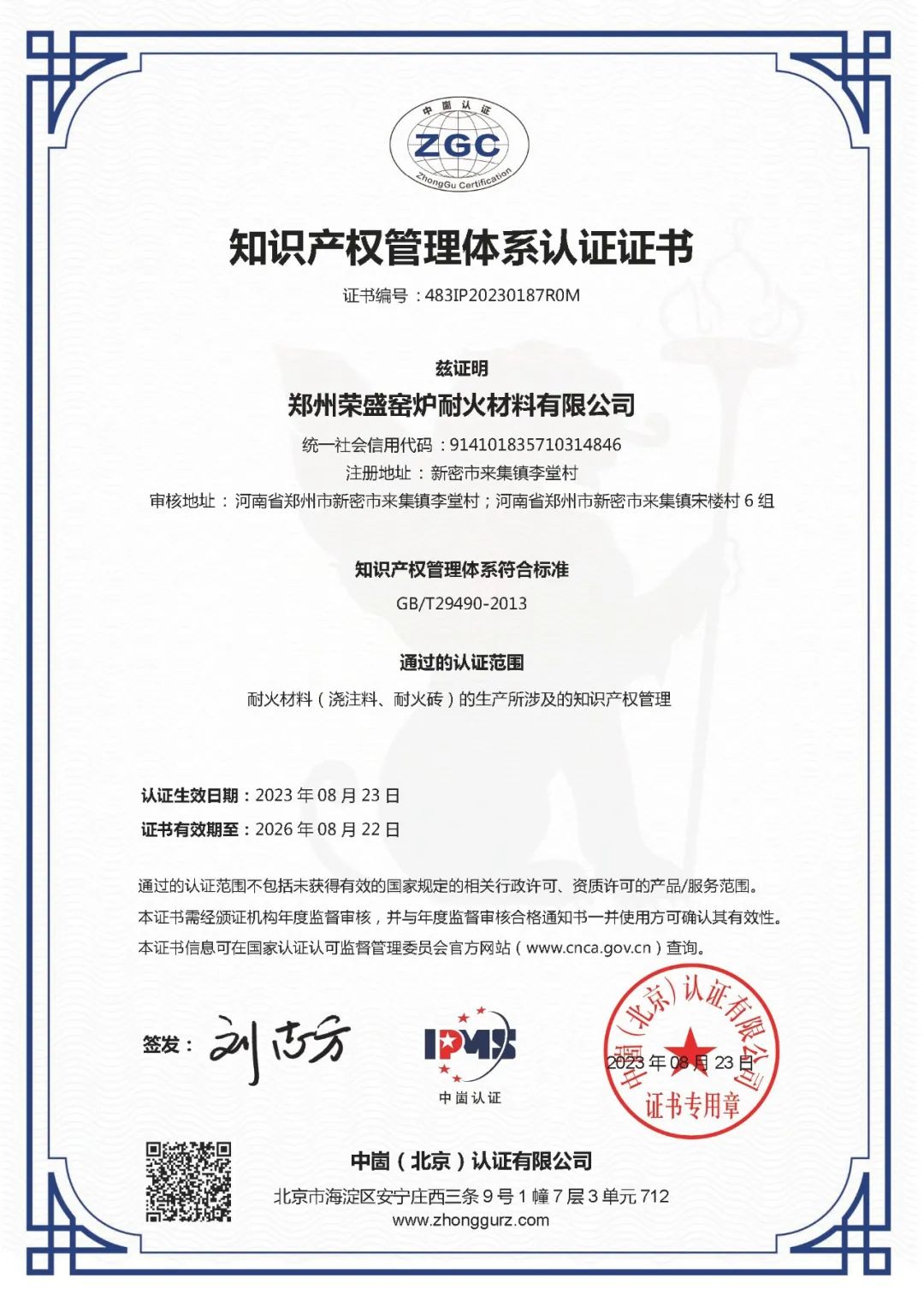 喜訊!榮盛耐材通過(guò)國(guó)家「知識(shí)產(chǎn)權(quán)管理體系認(rèn)證」!
